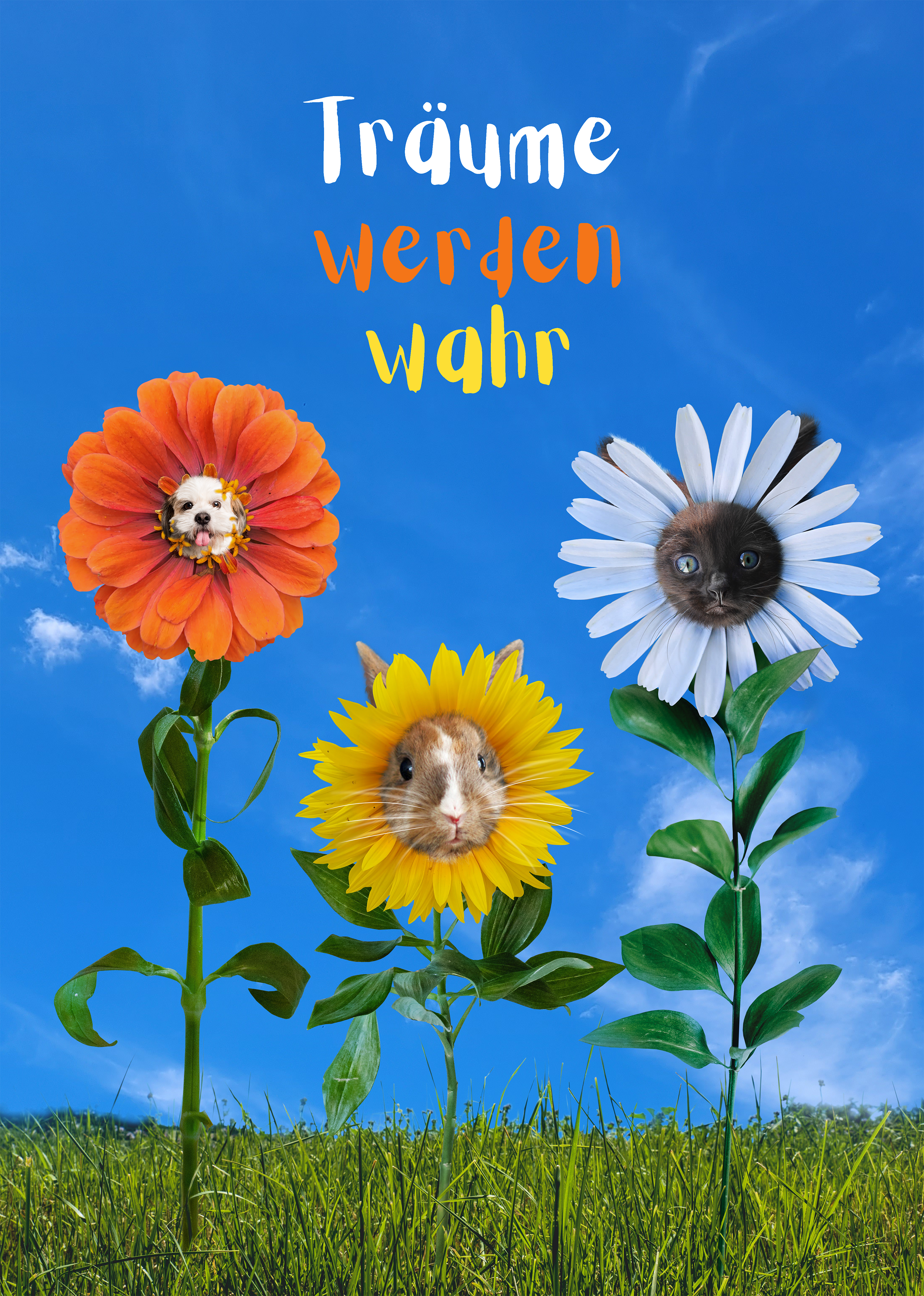 Chciałam w grafice przekazać ideę dojrzewania i akceptacji tego, że w jego trakcie przyjmujemy różne od siebie formy. Kwiaty są do tego doskonałe ze względu na swój wzrost, ale też kwitnienie, które podkreśla przemianę. Zależało mi też na podkreśleniu mocy kształtowania własnego losu, stąd dodałam niemiecki napis ,,Träume werden wahr", czyli ,,Marzenia się spełniają". Język ten będzie obecny w życiu dziecka, a kolaż będzie jednym z elementów prostej ekspozycji lingwistycznej.