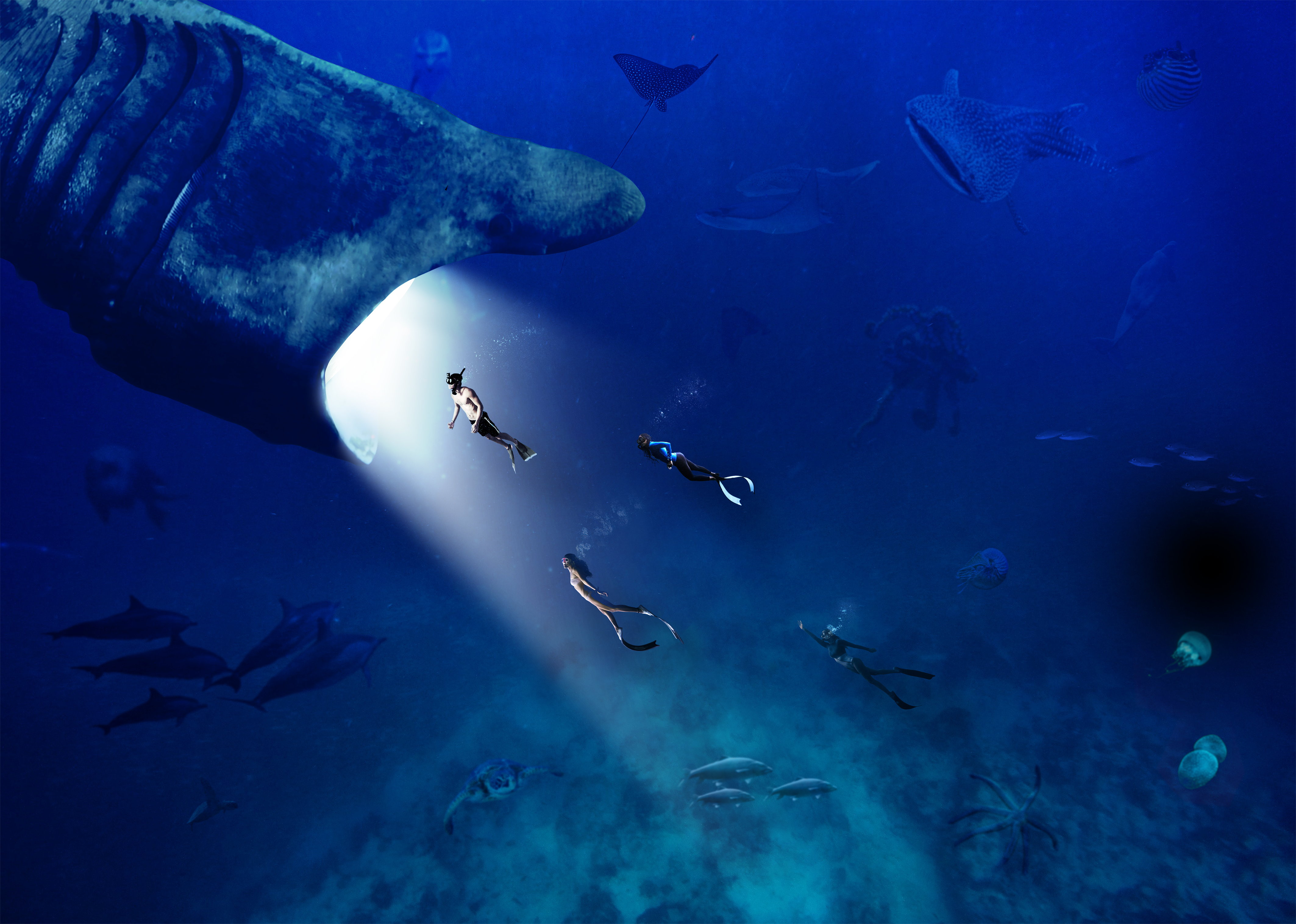 Kolaż powstał w ramach wyzwania instagramowego ,,Februllage" w 2023 roku, w którym codziennie w lutym są robione kolaże zainspirowane słowem danego dnia. Jest odpowiedzią na hasło ,,ryba" z dnia pierwszego. Powstawał przez kilka tygodni. Początkowo wyobrażałam sobie świat pełen kolorów. Głębia oceanu jest jednak bezlitosna dla światła białego, więc kolory, jakie widzimy na powierzchni, pojawiają się rzadko. Starałam się znaleźć balans w surrealizmie sceny względem tego, co ma być jak najbardziej zbliżone do rzeczywistości, a co można sobie odpuścić. Barwy pojawiają się więc tylko wtedy, kiedy ekran wewnątrz rekina oświetla sylwetki nurków. Wyświetlacz może być symbolem mediów, które są skrojone ściśle pod ludzką psychikę. Inni mieszkańcy oceanu nie wykazują zainteresowania nim.